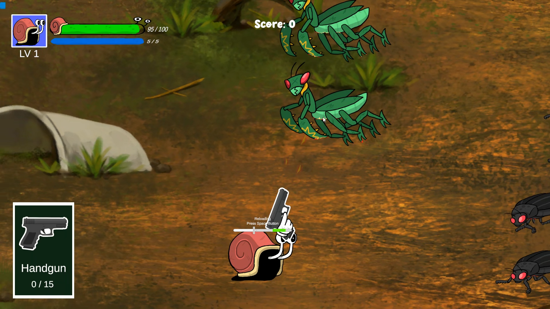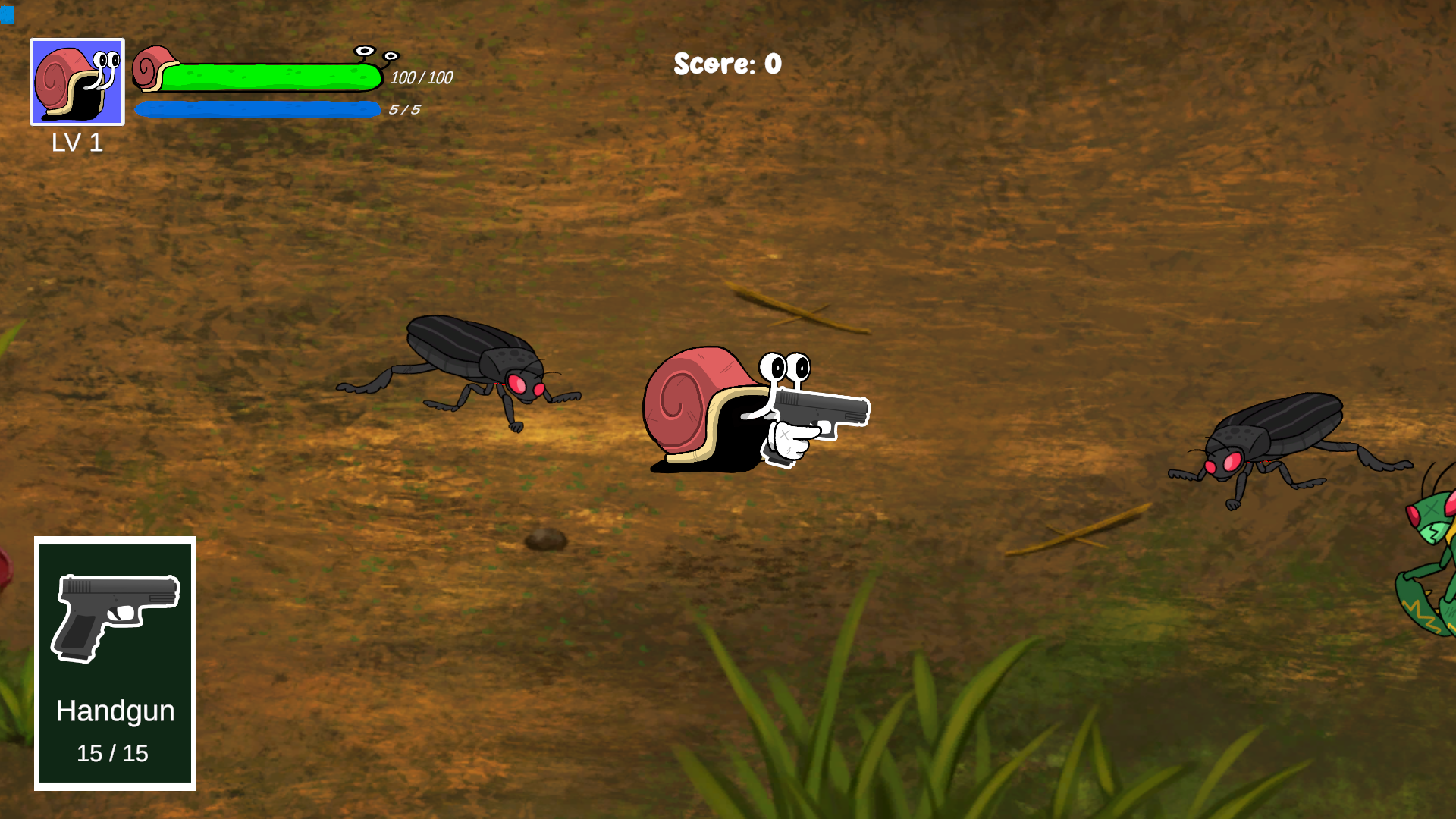 a simple action shooter game where the player plays using a snail